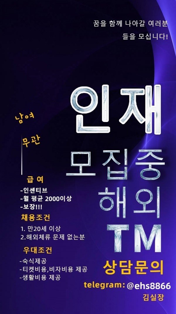 ❣️ 저희는 해외에서 TM(텔레마케팅) 업무를 함께할 성실한 인재를 모집하고 있습니다❣️