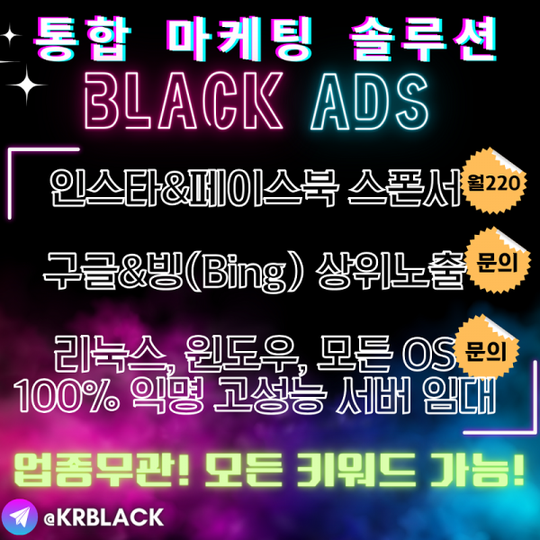안녕하세요. 인스타그램&페이스북 스폰서 및 구글 상위노출 전문 광고 실행사 블랙애드입니다.