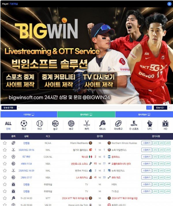 ⭕️실시간 스포츠영상 송출 업체 ⭐️빅윈소프트⭐️입니다⭕️